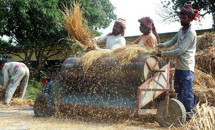 অগ্রহায়ণের সকালে আমন ধান মাড়াইয়ে ব্যস্ত কৃষক। ঈশ্বরদী উপজেলার পাকশী ইউনিয়ন থেকে ছবিটি তুলেছেন টিপু সুলতান।