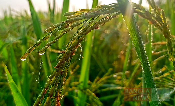সোনালী ধানে শিশির বিন্দু। ছবি: সোলায়মান হাজারী ডালিম