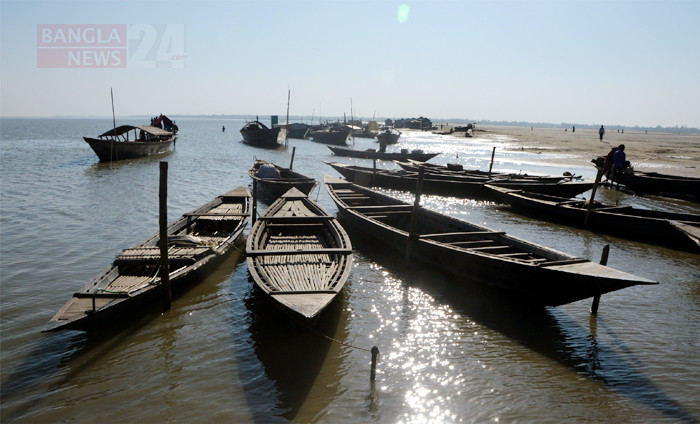 কুড়িগ্রামের ব্রহ্মপুত্র নদের পাড়ে ভিড়ানো নৌকা। ছবি: ফজলে ইলাহী স্বপন