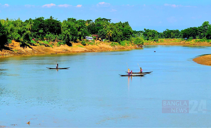 কুশিয়ারা নদীতে নৌকা চলাচল করছে। ছবি: মাহমুদ হোসেন