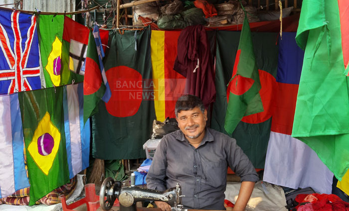 কয়েকদিন পরেই বিশ্বকাপ ফুটবল। সৈয়দপুরে পতাকা তৈরির ধুম। ছবি: আমিরুজ্জামান