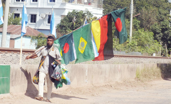 ফুটবল বিশ্বকাপকে কেন্দ্র করে জায়গায় জায়গায় বিক্রি হচ্ছে বিভিন্ন দেশের পতাকা। পাবনার ঈশ্বরদী পৌর এলাকা থেকে ছবিটি তুলেছেন টিপু সুলতান।