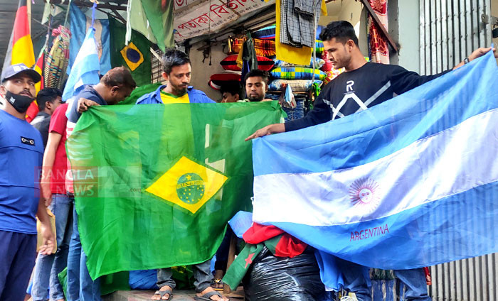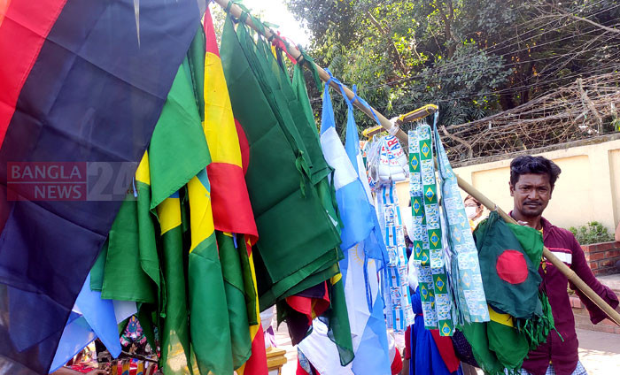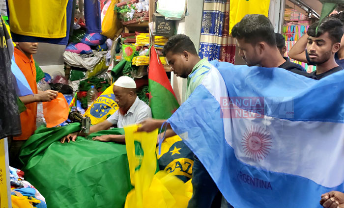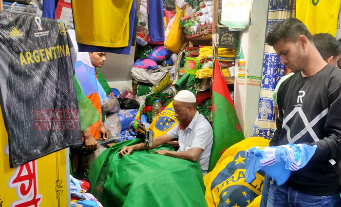 ফিফা বিশ্বকাপ ঘিরে উন্মাদনা আছে চট্টগ্রামেও। জার্সি, পতাকা কিনেছেন বিভিন্ন দলের সমর্থকরা। ছবি: সোহেল সরওয়ার
