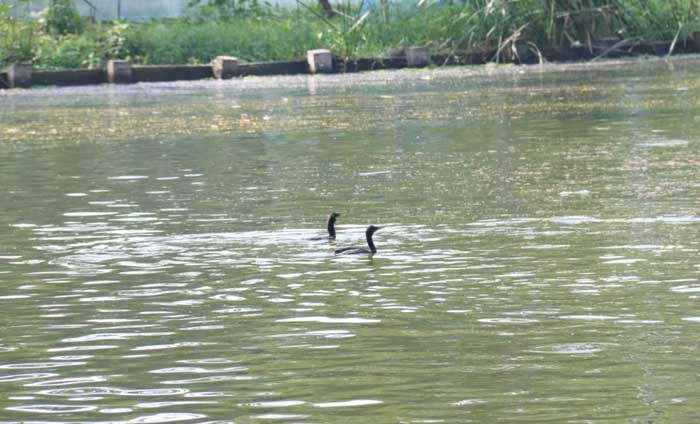সরকারি ব্রজমোহন কলেজের পুকুরে পানকৌড়ির ছুটোছুটি -ছবি এন আমিন রাসেল।