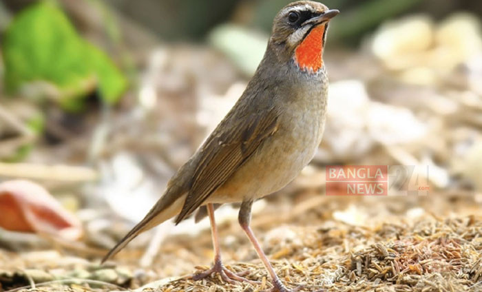 গলার নিচেই রক্তিম সৌন্দর্য ‘সাইবেরীয় চুনিকণ্ঠী’র। ছবি: তিমু হোসেন