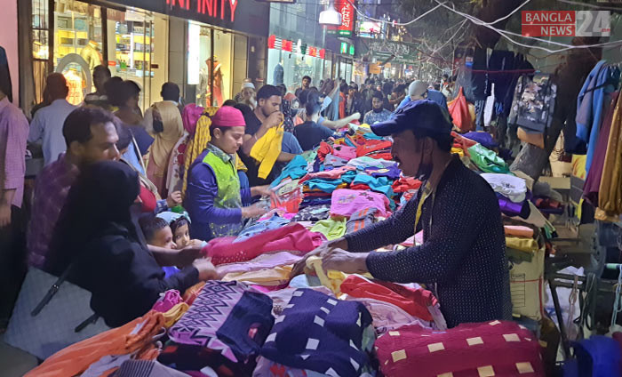 রাজধানীর মিরপুর দুই নম্বরের ফুটপাতে জমে উঠেছে শীতবস্ত্রের বেচাকেনা। ছবি: জি এম মুজিবুর