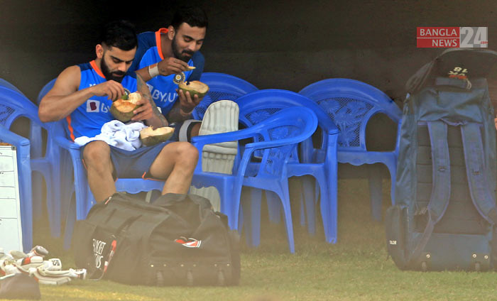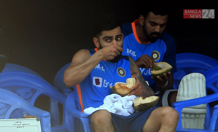 ডাবের শাঁস খাচ্ছেন বিরাট কোহলি। ছবি: শোয়েব মিথুন