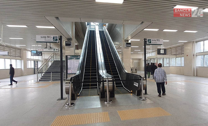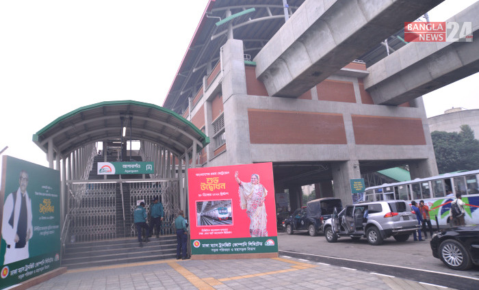 মেট্রোরেলের দৃষ্টিনন্দন স্টেশন। আগামীকাল উদ্বোধন হবে দেশের ব্যয়বহুল এ প্রকল্পটি। ছবি জিএম মুজিবুর।