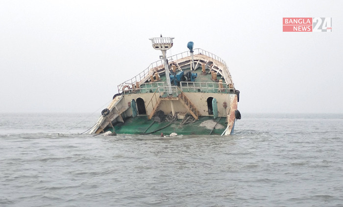ভোলার মেঘনায় জাহাজ ডুবি। ছবি ছোটন সাহা