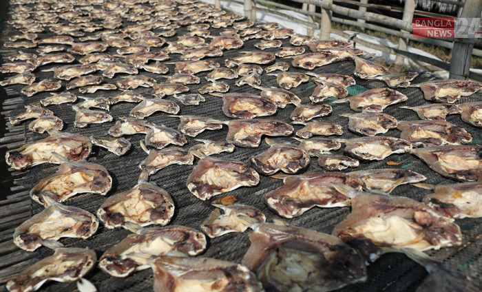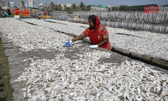 কর্ণফুলী নদীর তীরে শুকানো হচ্ছে শুটকি। ছবি: সোহেল সরওয়ার