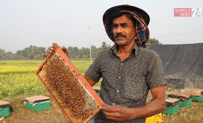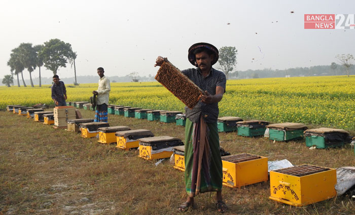 সরিষার মাঠ থেকে মধু সংগ্রহ চলছে । মাগুরা থেকে ছবিটি তুলেছেন জয়ন্ত জোয়ার্দ্দার