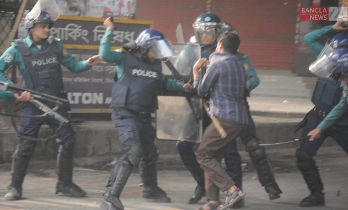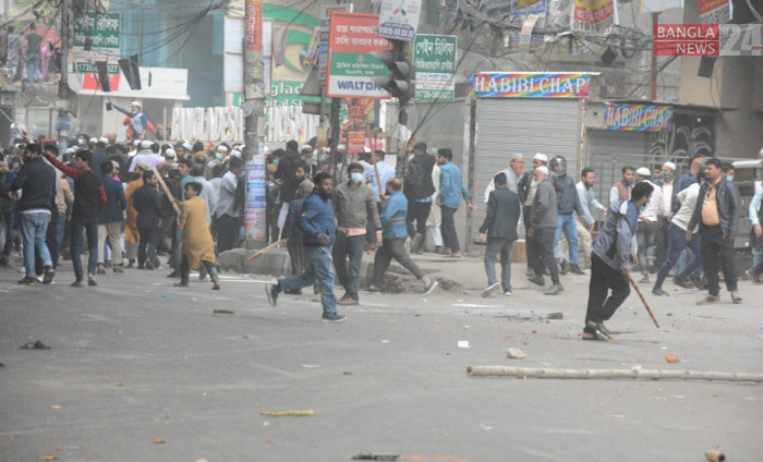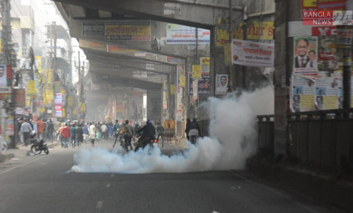 রাজধানীর মগবাজারে জামায়াত-পুলিশের সংঘর্ষ। ছবি- শাকিল আহমেদ