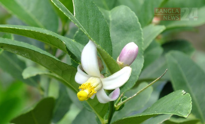 কাগজি লেবু ফুল। পাবনার ঈশ্বরদী উপজেলার পাকশী ইউনিয়ন পরিষদ চত্বর থেকে ছবিটি তুলেছেন টিপু সুলতান।
