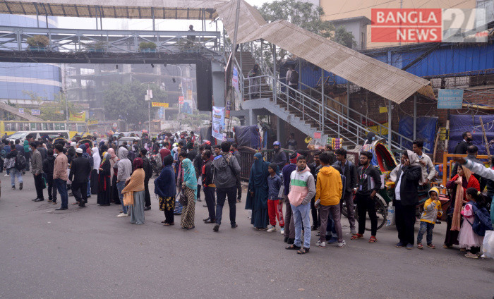 কুয়াশার মধ্যে গণপরিবহন কম থাকায় চরম ভোগান্তিতে পড়েছেন সাধারণ মানুষ। মিরপুর-১০ এলাকা থেকে ছবিটি তুলেছেন জি এম মুজিবুর।
