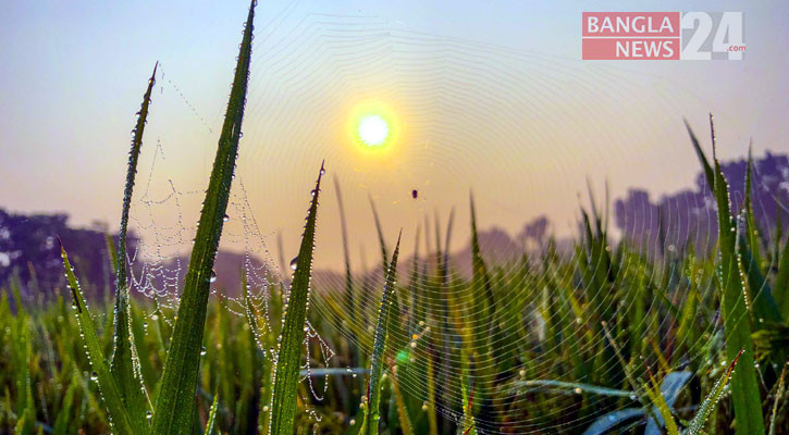 মাকড়শার জালে জমেছে শিশির বিন্দু। ছবি: বাংলানিউজ