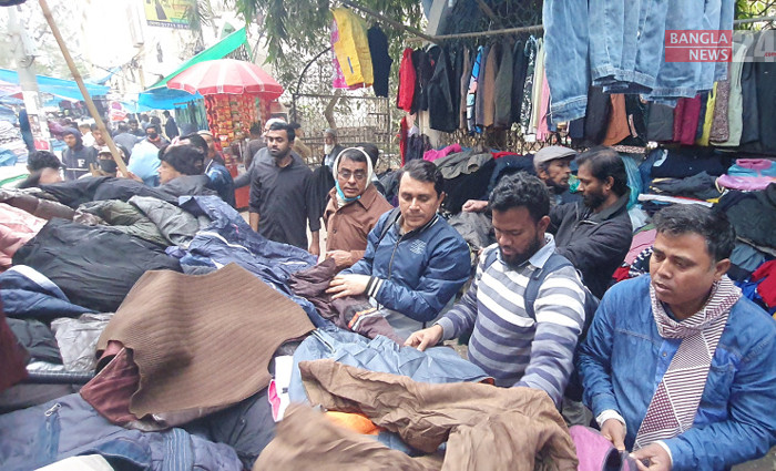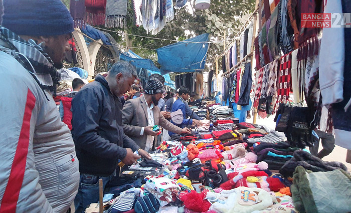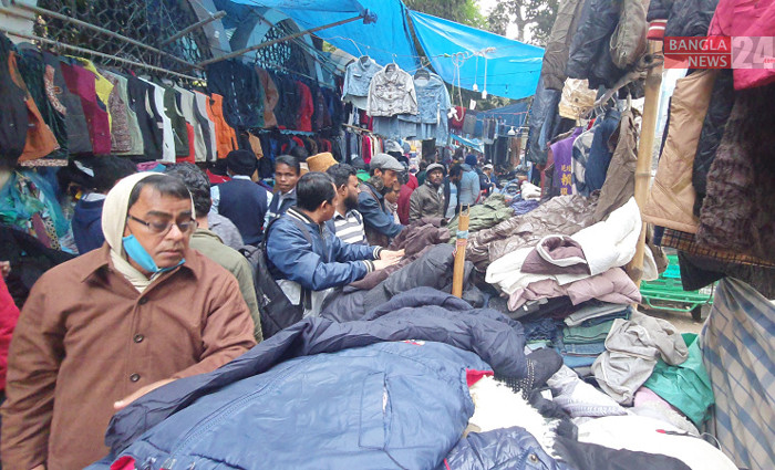 বায়তুল মোকাররমের উত্তর গেটে শীতের পোশাকের দোকানে উপচে পড়া ভিড়। ছবি: জি এম মুজিবুর