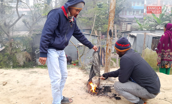 তীব্র শীতে কাবু জীবন-যাপন। রাস্তার পাশে খড়কুটো দিয়ে আগুন জ্বালিয়ে ঠাণ্ডা তাড়ানোর চেষ্টা করছেন মানুষজন। ফরিদপুর থেকে ছবি তুলেছেন হারুন-অর-রশীদ