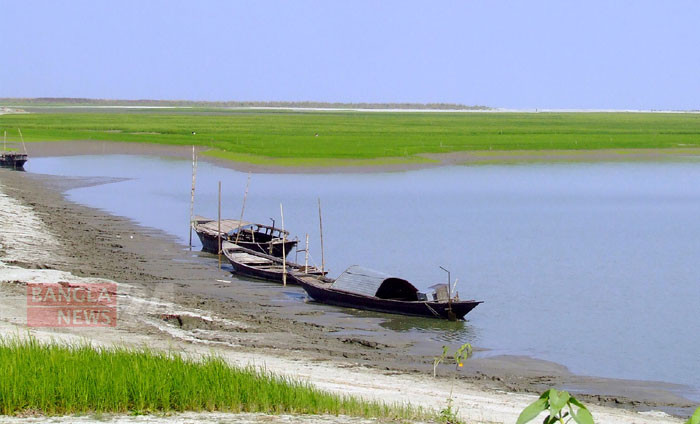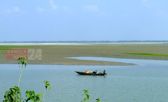 কুড়িগ্রামের ধরলা নদীতে কমছে পানি, জাগছে ধু ধু বালুচর। ছবি: ফজলে ইলাহী স্বপন।