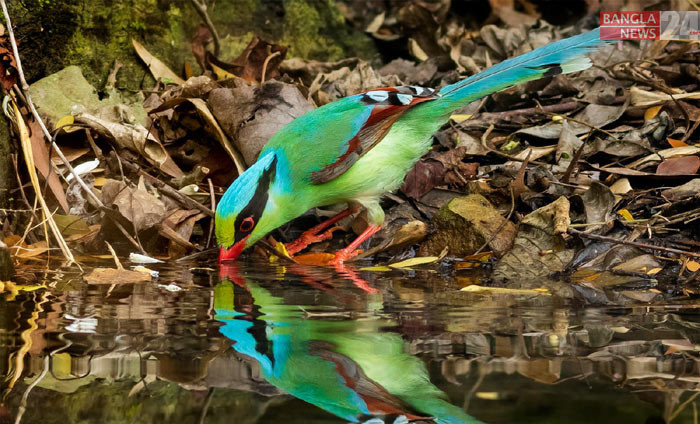 বনের নির্জন পানিতে ঠোঁট রেখেছে ‘পাতি সবুজতাউরা’। ছবি: আবু বকর সিদ্দিক