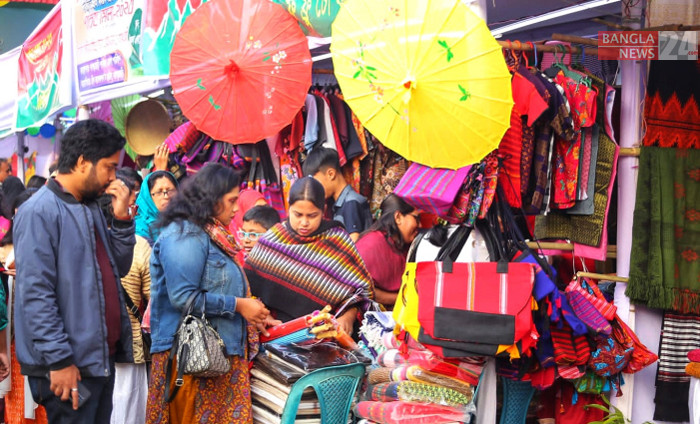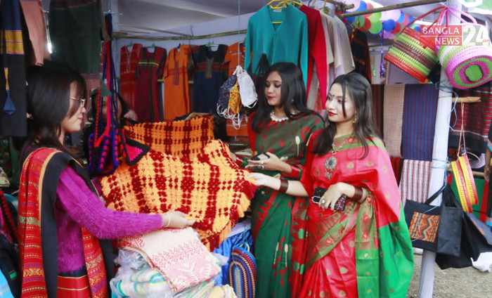 মেলায় কেনাকাটা করছেন দর্শনার্থীরা। বাংলাদেশ শিল্পকলায় অনুষ্ঠিত পার্বত্যমেলার ছবি তুলেছেন ডিএইচ বাদল।