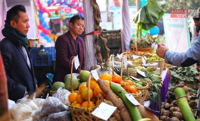 বাংলাদেশ শিল্পকলায় অনুষ্ঠিত পার্বত্যমেলায় বাহারি ও সুস্বাদু ফলের দোকান দিয়েছেন দোকানিরা। ছবি তুলেছেন ডিএইচ বাদল।