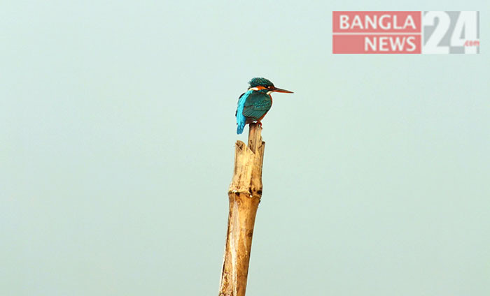 বিলের মাঝে বাঁশের খুটিতে বসে আছে মাছরাঙ্গা। পাবনার চর ভাঙ্গুড়া থেকে ছবিটি তু্লেছেন টিপু সুলতান।