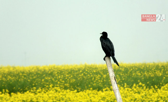 মাঘের সকালে সরিষা ক্ষেতে পুতে রাখা খুঁটিতে পানকৌড়ি। ঈশ্বরদী-ঢাকা রেলরুটের পাবনার ভাঙ্গুড়া উপজেলা দিলপাশার ইউনিয়নের ডেমরা এলাকা থেকে ছবিটি তুলেছেন টিপু সুলতান।