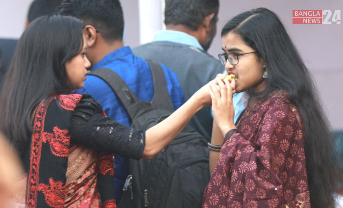 শিল্পকলার মেলায় পিঠা খাওয়ায় ব্যস্ত দর্শনার্থীরা। ছবি ডিএইচ বাদল