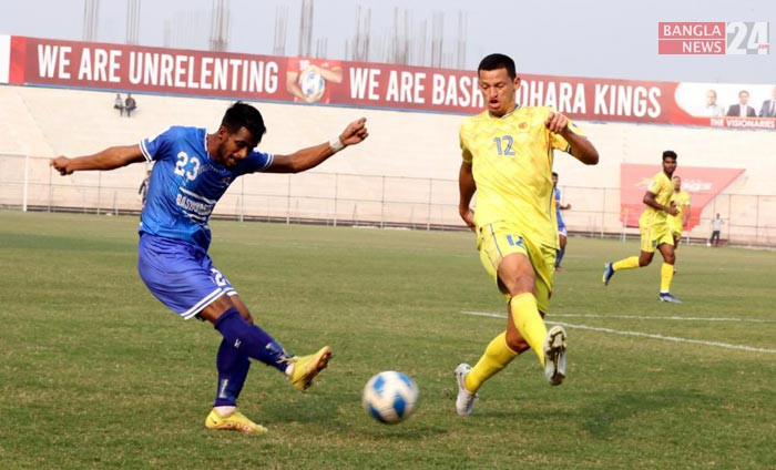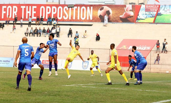 বাংলাদেশ প্রিমিয়ার লিগ ফুটবলে শেখ রাসেল ক্রীড়া চক্র বনাম আবাহনী লিমিটেডের মধ্যকার ম্যাচ। ছবি শোয়েব মিথুন