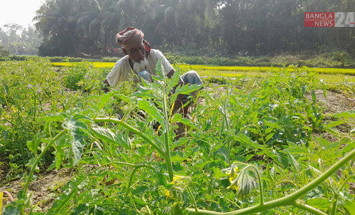 টমেটো ক্ষেত পরিচর্যা করছেন এক কৃষক। ছবিটি লক্ষ্মীপুর সদর উপজেলার যাদৈয়া থেকে তুলেছেন মো. নিজাম উদ্দিন।