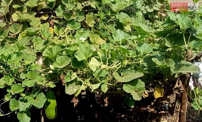 মাচায় লাউ ধরতে শুরু করেছে। আশুলিয়া এলাকা থেকে ছবি তুলেছেন জি এম মুজিবুর