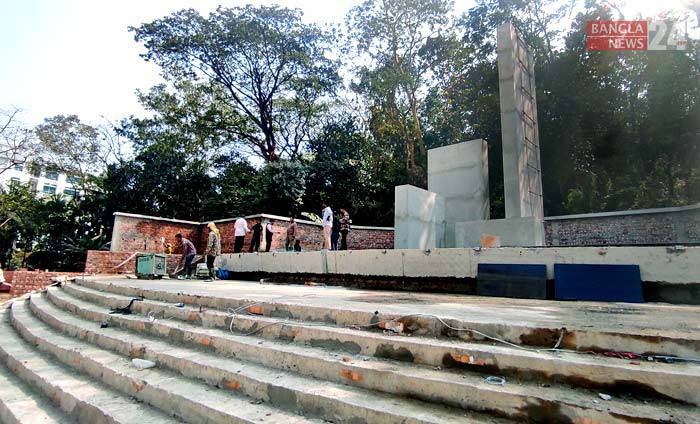 আসন্ন আন্তর্জাতিক মাতৃভাষা দিবসে মানুষের শ্রদ্ধা জানাতে ব্যবহার উপযোগী করে তোলা হচ্ছে ২৩৩ কোটি টাকা ব্যয়ে চট্টগ্রাম মুসলিম সাংস্কৃতিক ইনস্টিটিউট প্রকল্পের আওতায় নব নির্মিত কেন্দ্রীয় শহীদ মিনার। ছবি: উজ্জ্বল ধর