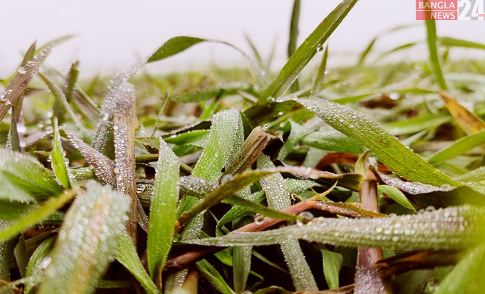 ঘাসের ডগায় শিশির কণা। সাভারের বিএলআরআইয়ের লেক থেকে ছবি তুলেছেন সাগর ফরাজী।