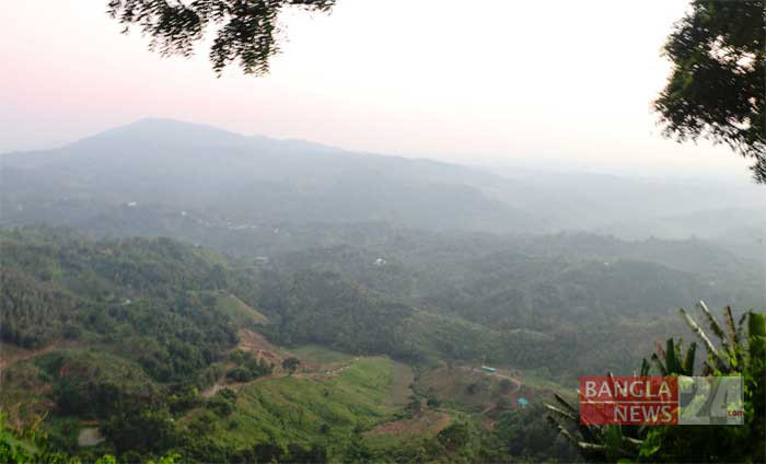কুয়াশাচ্ছন্ন বান্দরবান সদরের নীলাচল পর্যটনকেন্দ্রের পাশের পাহাড়। ছবি: কৌশিক দাশ