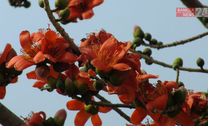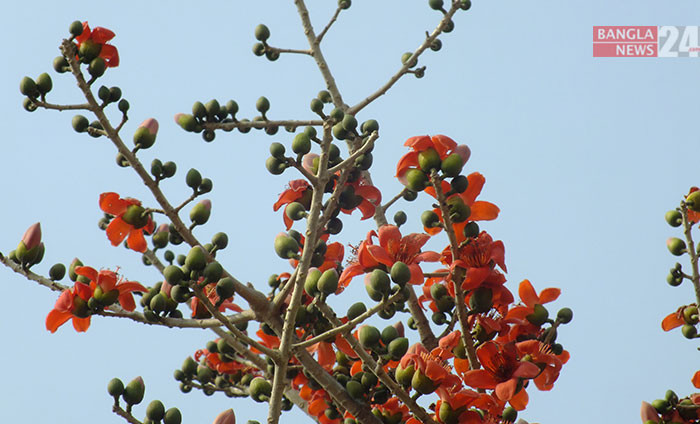 ফাল্গুন আসার আগে গাছে গাছে শোভা পাচ্ছে শিমুল ফুল। ঈশ্বরদীর রূপপুর রেলস্টেশন থেকে ছবিটি তুলেছেন টিপু সুলতান