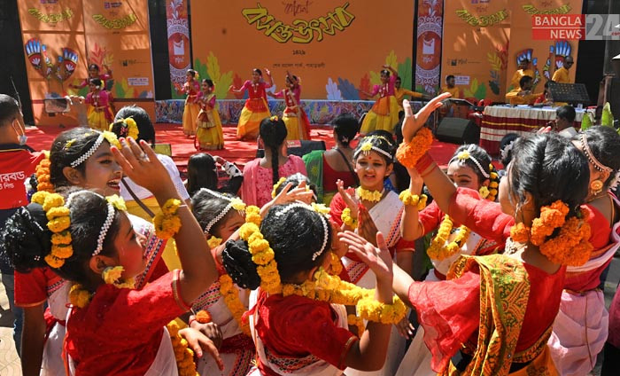 বরিশাল সারস্বত গার্লস স্কুল অ্যান্ড কলেজ মাঠে ৩৮ তম বসন্ত উৎসবে শিশুরা। ছবি এন আমিন রাসেল।