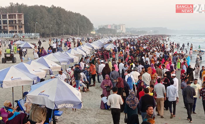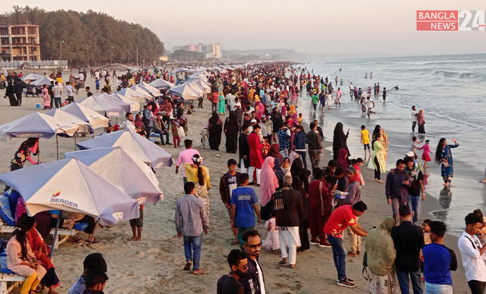 বিশ্বের দীর্ঘতম সমুদ্র সৈকতে পর্যটকদের ভিড়। ছবি: বাংলানিউজ