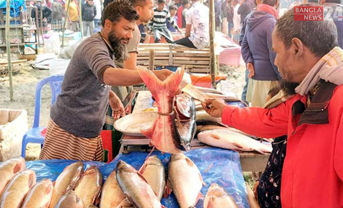 ঐতিহ্যবাহী ‘পোড়াদহ মেলা’য় বিক্রি হচ্ছে মাছ। ছবি: কাওছার উল্লাহ আরিফ