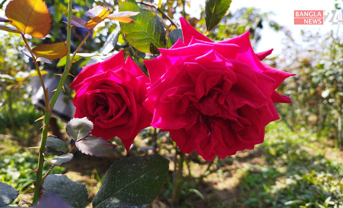 গাছে দুলছে গোলাপ ফুল। ছবি: সাগর ফরাজী