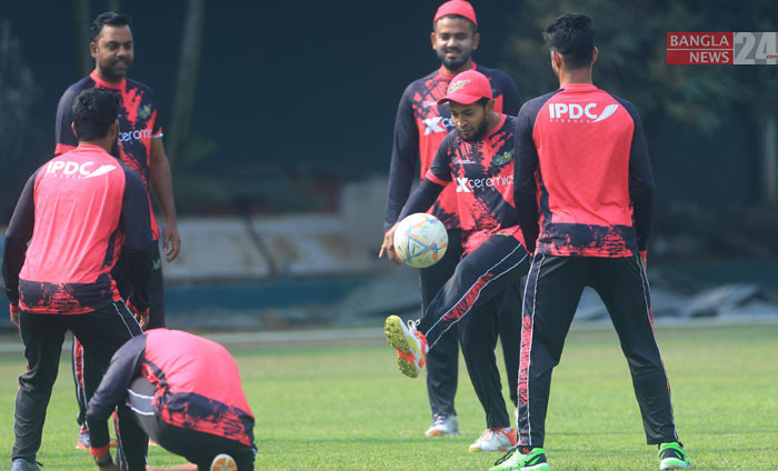 বিপিএল ফাইনালের আগে মাঠে ঘাম ঝরাচ্ছেন ক্রিকেটাররা। ছবি: শোয়েব মিথুন