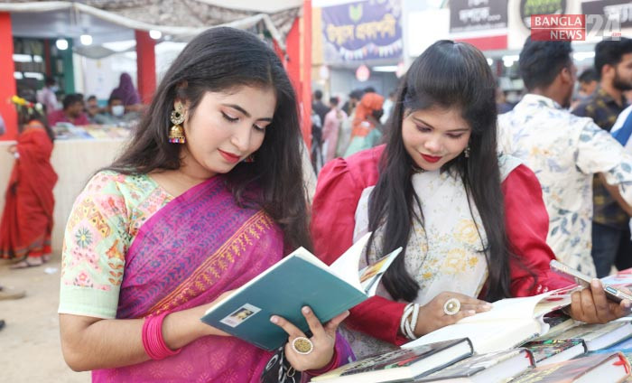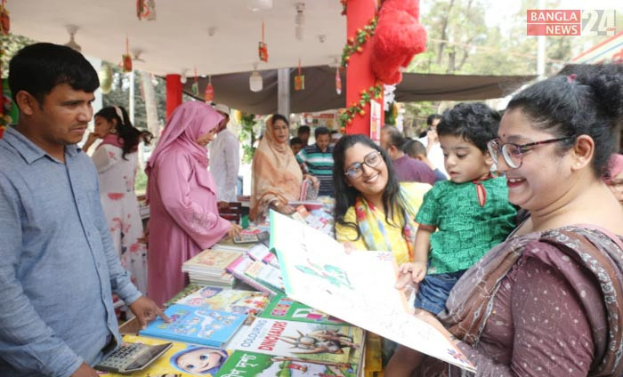 হামলার হুমকি উপেক্ষা করে প্রাণবন্ত ও উৎসবমুখরভাবে বইমেলায় ক্রেতা-দর্শনার্থীরা। ছবি তুলেছেন শাকিল আহমেদ।