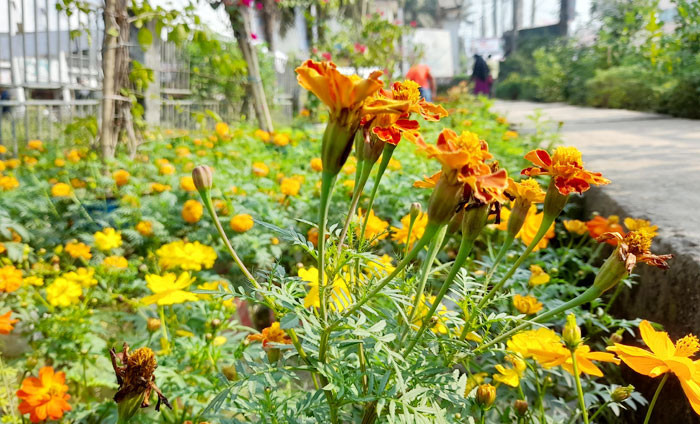 গাঁদা ফুল। লক্ষ্মীপুর সদর উপজেলা পরিষদের সামনে থেকে ছবি তুলেছেন মো. নিজাম উদ্দিন।