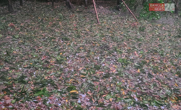 ভয়াবহ শিলাবৃষ্টির কবলে সিলেটের কয়েকটি উপজেলা। ভোরে ঘণ্টা ব্যাপী শিলাবৃষ্টিতে ব্যাপক ক্ষয়ক্ষতি হয়েছে। ছবি: মাহমুদ হোসেন।