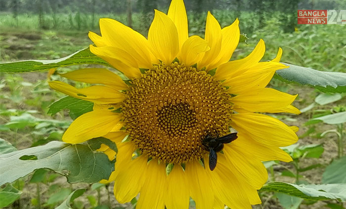 সূর্যমুখী ফুলে উড়ছে ভ্রমর। ছবিটি লক্ষ্মীপুর সদর উপজেলার যাদৈয়া গ্রাম থেকে তুলেছেন মো. নিজাম উদ্দিন