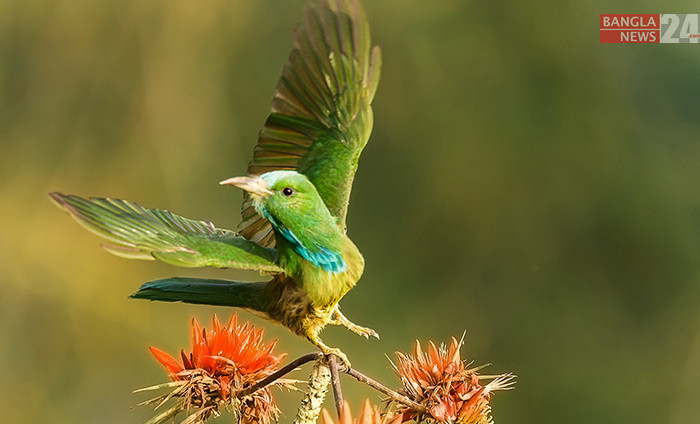 ডানা মেলেছে নীলদাড়ি-সুইচোরা। ছবি: তিমু হোসেন