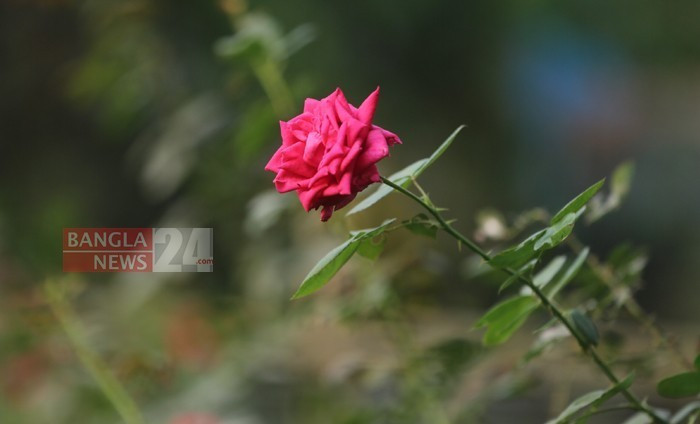 লাল গোলাপ। বেরুলিয়া গোলাপ গ্রাম থেকে ছবিটি তুলেছেন রাজীন চৌধুরী।
