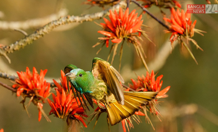 ডানা মেলেছে নীলদাড়ি-সুইচোরা। ছবি: তিমু হোসেন