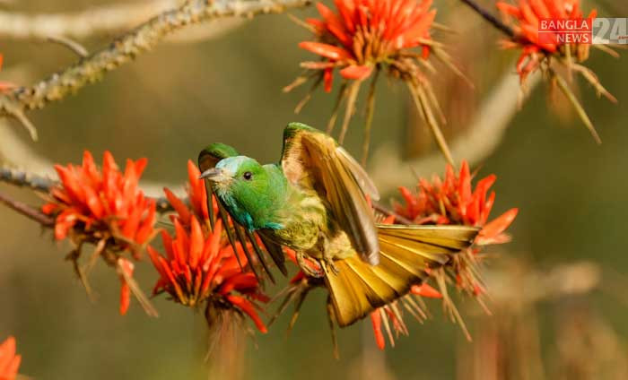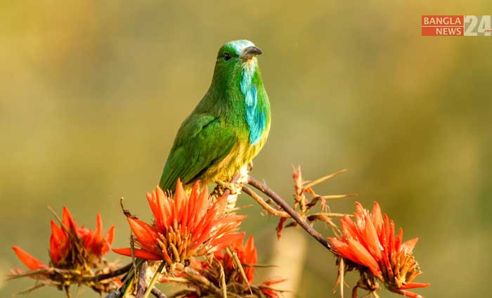 সবুজ বনের পাখি নীলদাড়ি-সুইচোরা। ছবি: তিমু হোসেন