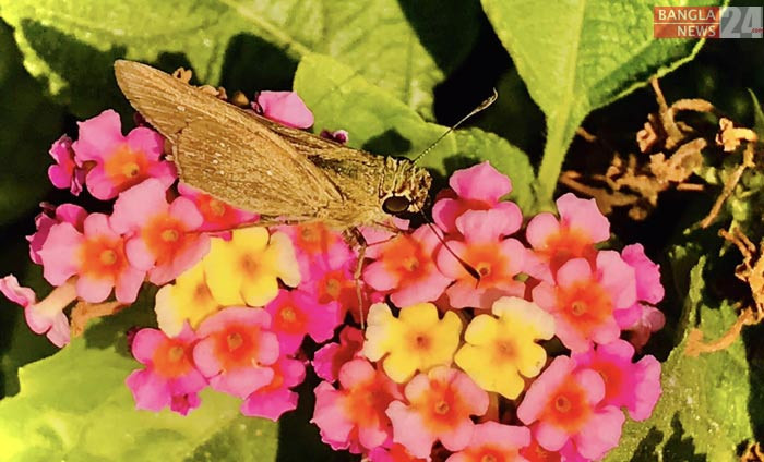 ল্যান্টানা ফুলে বসে মধু আহরণে ব্যস্ত প্রজাপতি। ঢাকার মোহাম্মদপুরের বসিলা এলাকা থেকে ছবি তুলেছেন সোনিয়া রহমান ঝুমি।