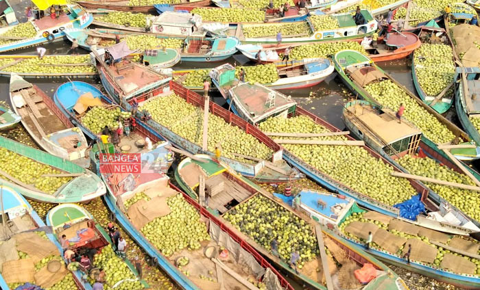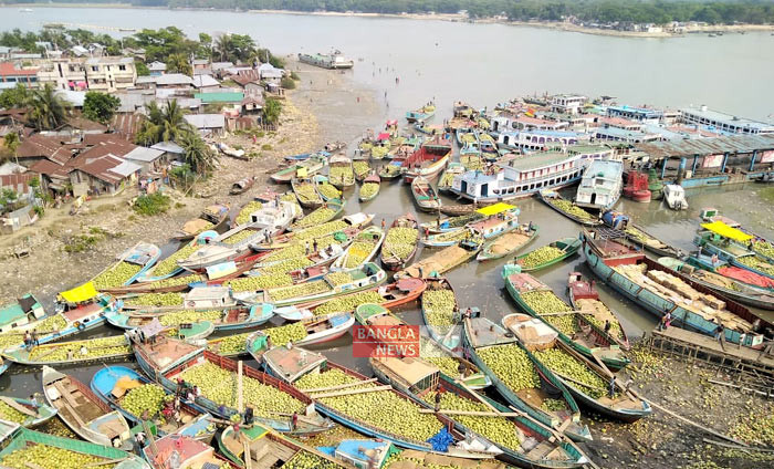 ভাসমান তরমুজ বাজার। ছবিটি বরিশাল নগরের পোর্টরোডস্থ পাইকার বাজার থেকে তুলেছেন এন আমিন রাসেল।